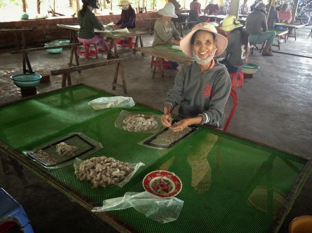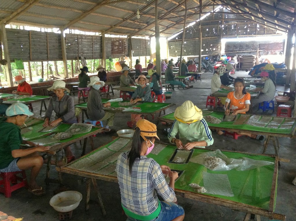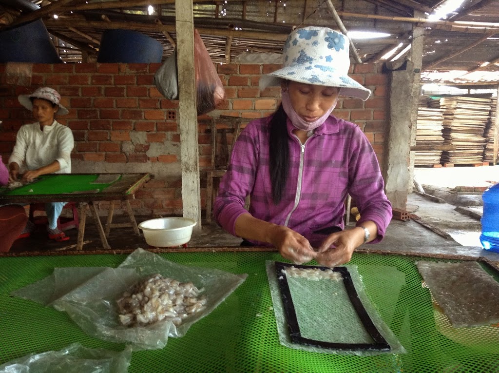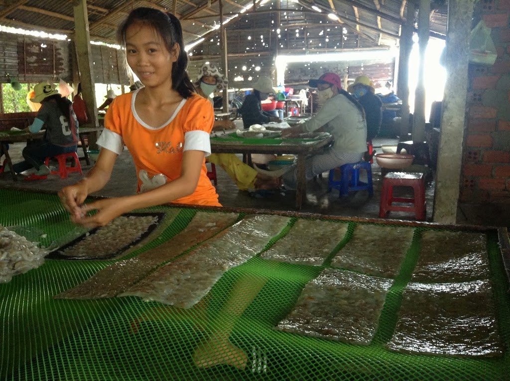 Our day trip from Hoi An leads us to the discovery of two distinct product lines: Dried fish “paper” on a grand scale and bamboo circular boats being made by one artisan.